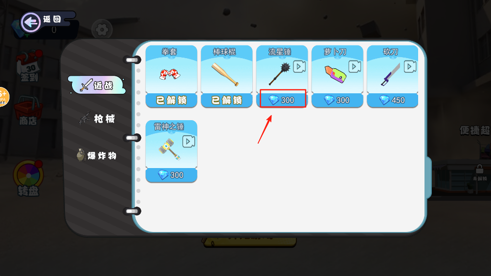 3、在商店界面,选择并购买所需的装备,如“雷神之锤”,准备进行游戏挑战。