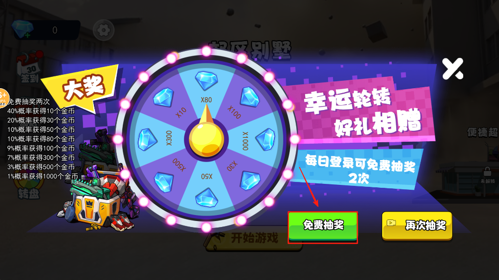 4、在幸运轮转界面,点击“免费抽奖”按钮,尝试获取额外的游戏奖励。