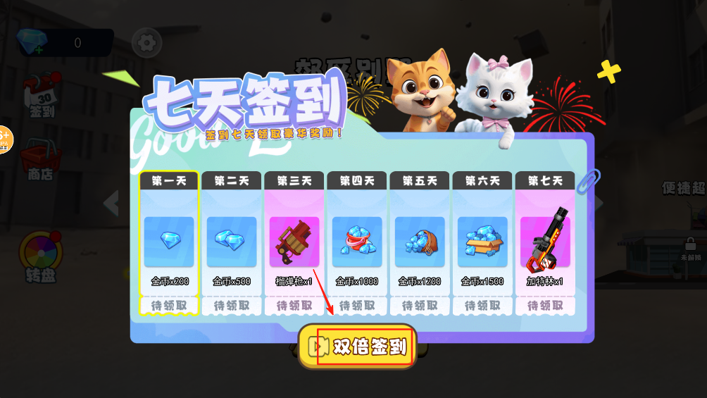 2、在游戏主界面,点击“签到”按钮,领取每日奖励,增加游戏资源。