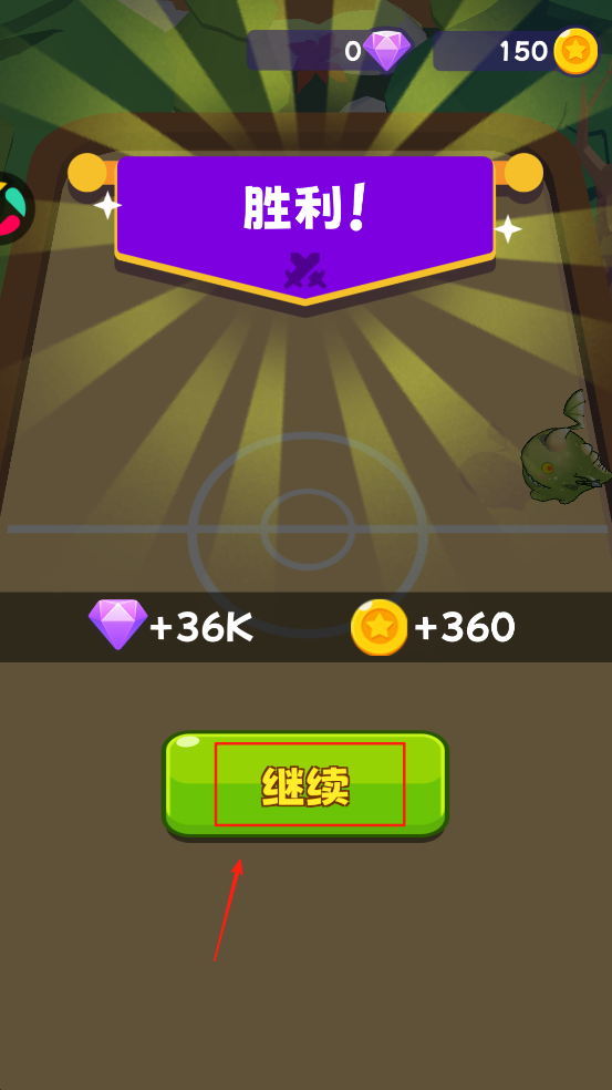 4、战斗胜利后,点击“继续”按钮领取奖励并进行下一关。