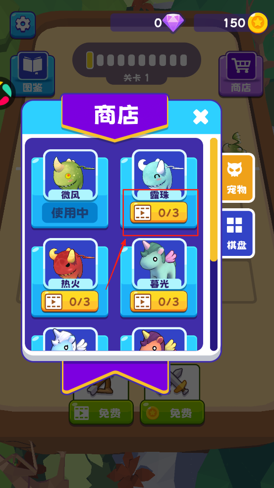 3、访问商店,购买或升级你的宠物,增强战斗力。