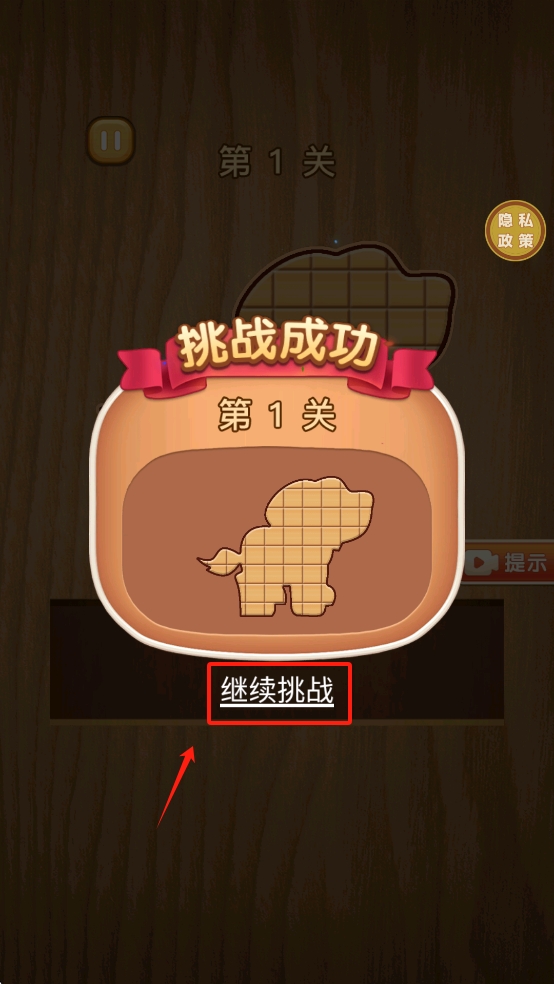 3、完成当前关卡后,点击“继续挑战”按钮。