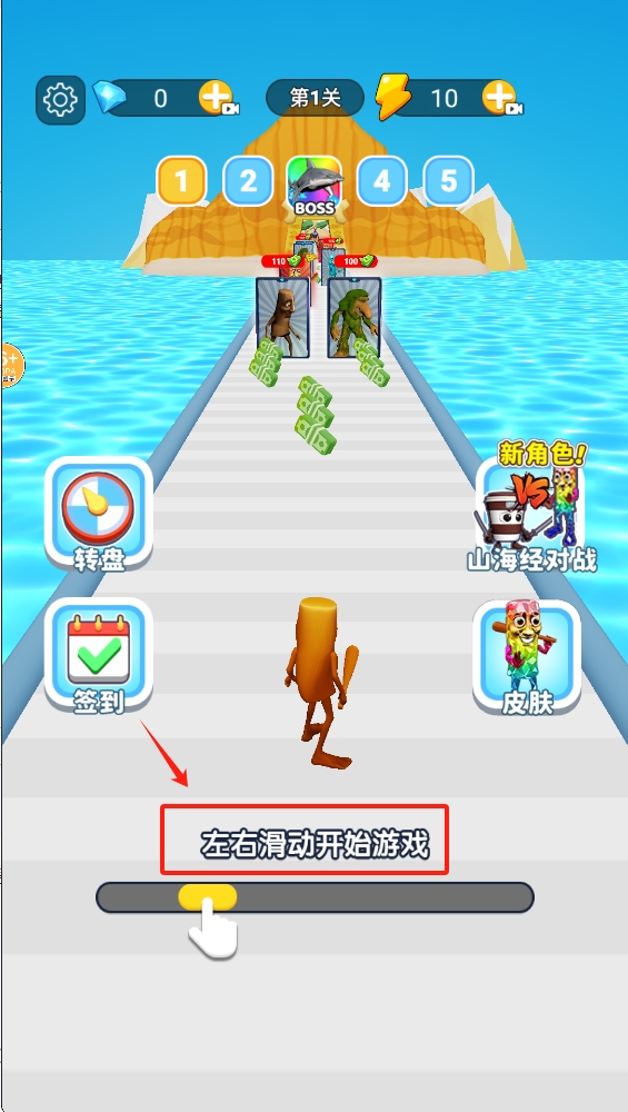 1、通过左右滑动屏幕来控制角色移动,开始游戏。