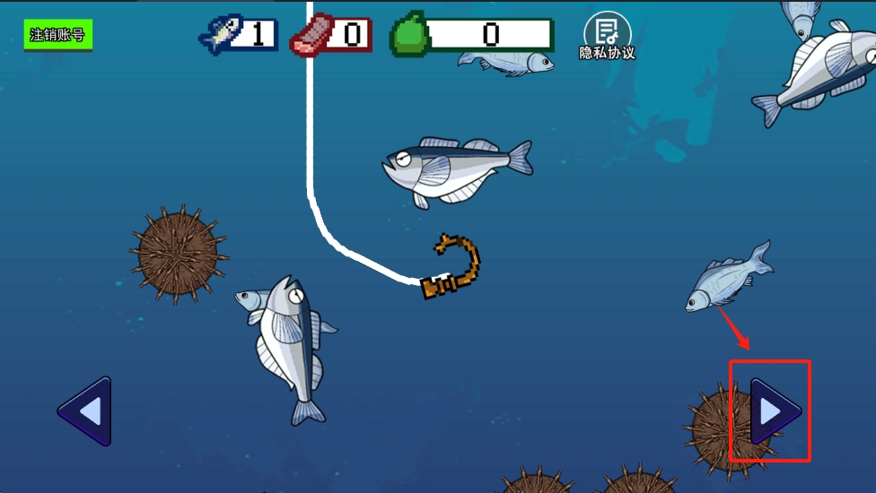 3、在游戏过程中,调整鱼钩方向开始刮鱼鳞动作。