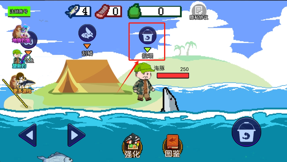 4、当海豚靠近时,点击“投喂”按钮以喂养海豚并获得奖励。