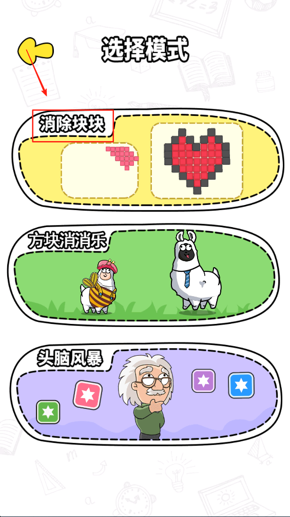 2、在模式选择界面,点击“消除块块”等不同模式,开始你的消除挑战。