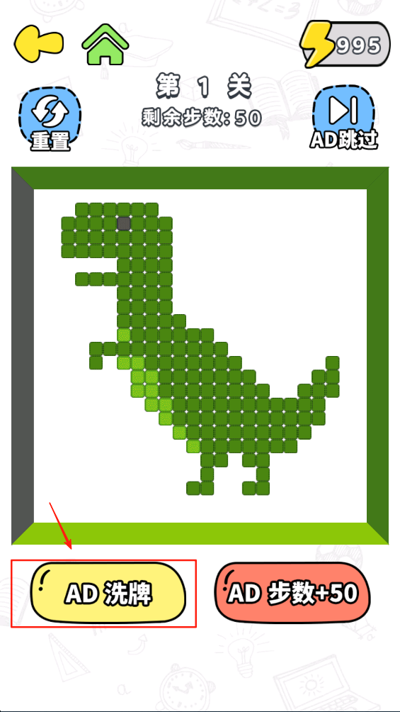 4、在游戏界面,点击“AD洗牌”按钮开始消除,通过策略消除获得高分。