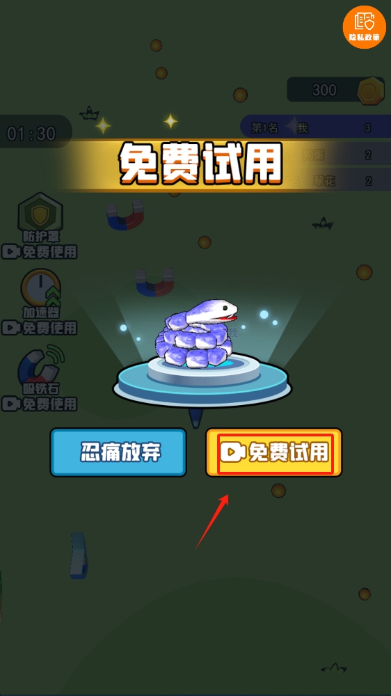 1、选择“免费试用”按钮,体验道具带来的便利。