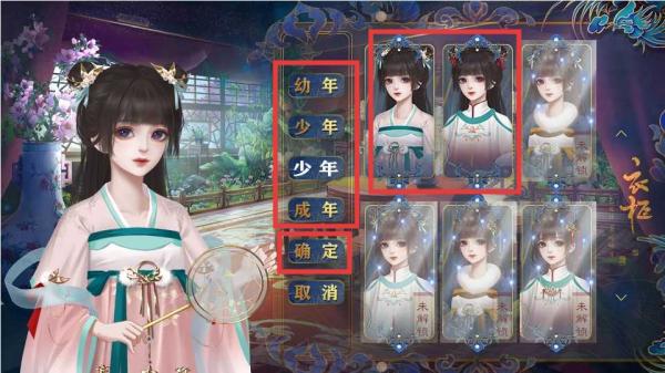 3、在衣柜界面,可以选择对应年龄的服饰,再点击【确定】即可。