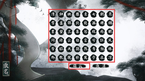 3、在框选文字中,选取喜欢的名字,完成后点击【确认】。