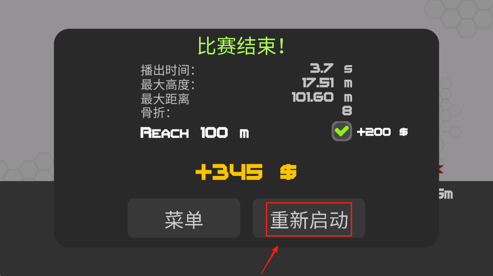 4、比赛结束后,点击“重新启动”按钮,再次挑战以获取更高分数。