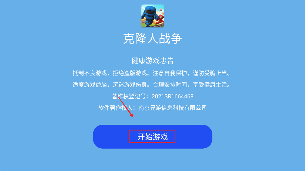 1、点击“开始游戏”按钮,进入游戏主界面,开始你的克隆人战斗。