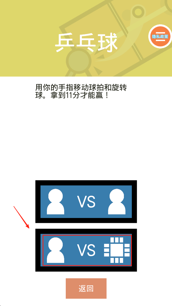 1、在游戏主界面,选择“乒乓球”模式开始游戏。