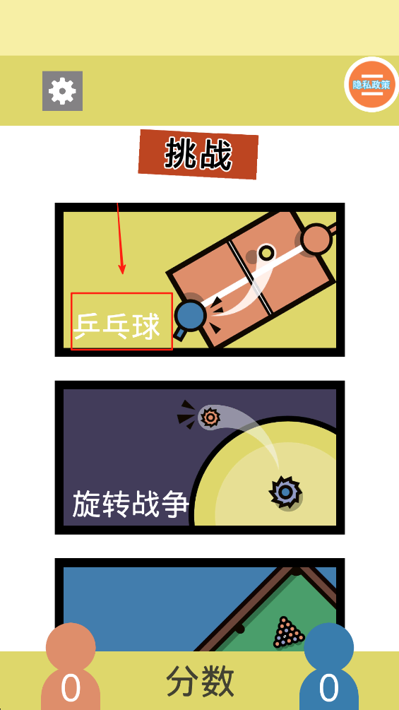 1、进入游戏后,首先从琳琅满目的主题模式中挑选一个双方都想尝试的,例如激情四射的“旋转擂台”或优雅精准的“撞球大师”。