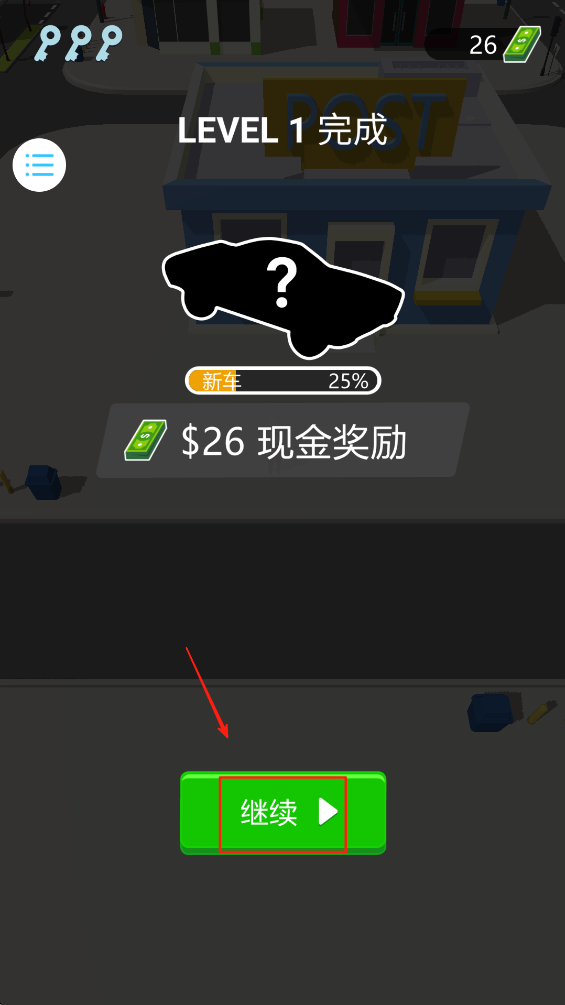 4、完成任务后,点击“继续”按钮,领取你的现金奖励,并准备进行下一关的挑战。