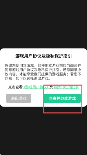 2、请认真浏览后点击“同意并继续游戏”方可进入主界面。