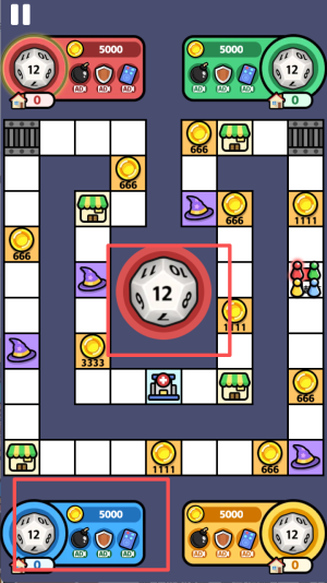4、游戏界面显示金币、玩家状态与骰子点数,注意观察对手动向,合理投资成为最终的大富翁。