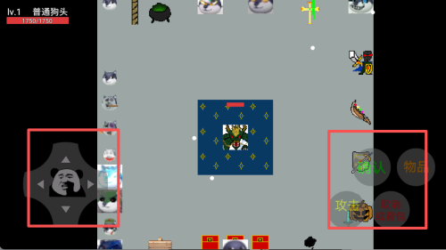 2、在Lv.1普通狗头界面查看1750/1750血量后点击“物品”或“背包”确认初始道具再点“认”继续。