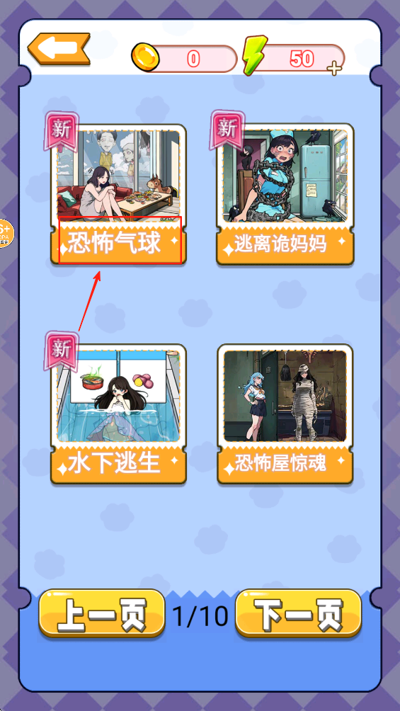 2、在关卡选择界面,点击“恐怖气球”关卡,选择你想要挑战的模式。