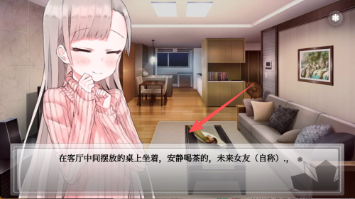 4、继续点击屏幕,场景切换至客厅,即可看到自称未来女友的角色安静喝茶,序章展开。