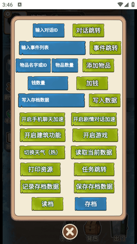 3、然后我们就可以看到GM菜单了,里面有很多功能可以使用,例如:事件跳转、添加物品、切换天气等等,大家可以根据自己的需要选择使用。