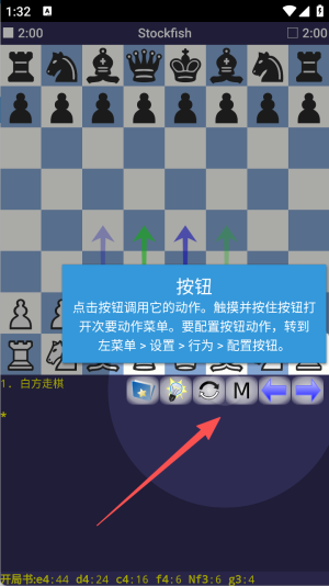 3、点棋盘旁按钮可执行走子长按则打开次要动作菜单建议先熟悉默认动作。