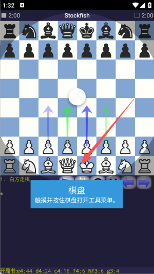 2、在棋盘界面触摸并按住棋盘可呼出工具菜单快速切换引擎或提示模式。