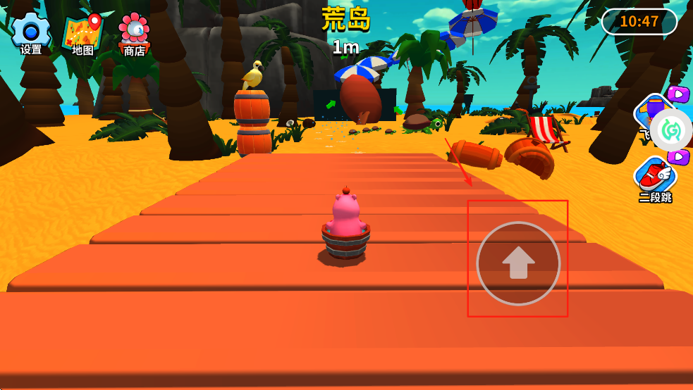 1、点击屏幕中的虚拟按键,控制角色移动和跳跃。