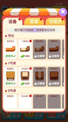 4、点击左下角的餐厅管理,在这里可以修建新的设备,也可以升级解锁新菜品。