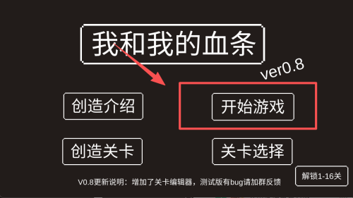 1、启动我和我的血条点“开始游戏”再进“创造关卡”即可打开全新关卡编辑器。