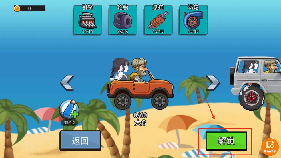 3、在车辆选择界面,点击“解锁”按钮,获取新的车辆以增强您的游戏体验。