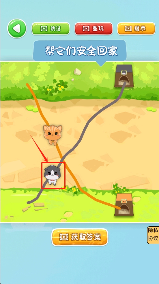4、护送成功享喜悦:当路径正确绘制完成,猫咪将沿着路线快乐奔跑回家,收获满满的成就感与愉悦。