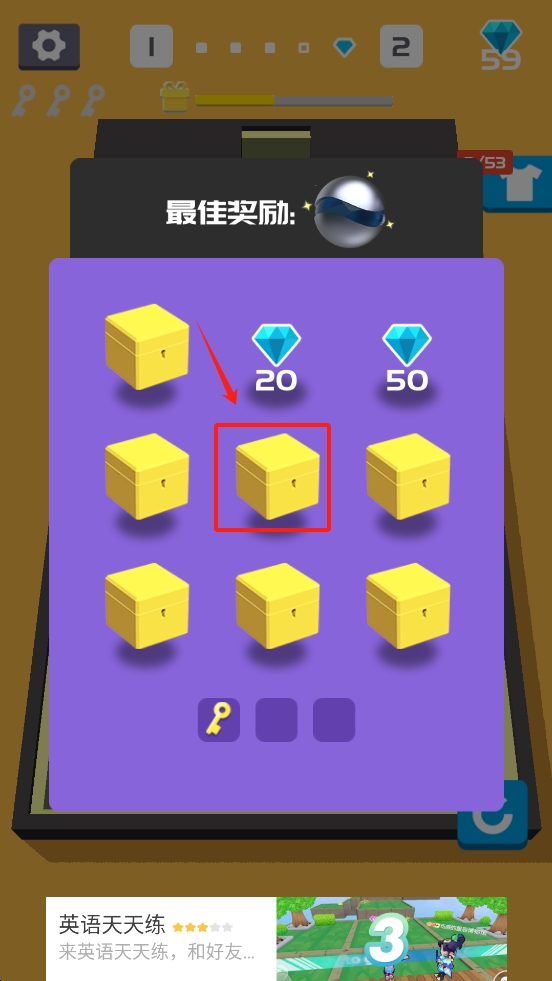 3、点击"钥匙"按钮,打开礼盒,领取20金币。