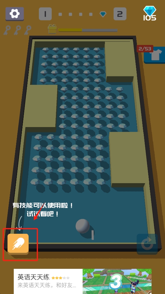 4、出现“有技能可以使用啦”提示,点击技能图标试用。