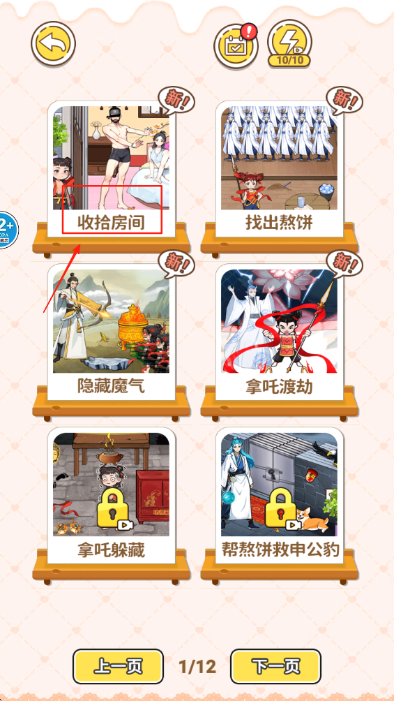 2、在游戏模式选择界面,点击“收拾房间”关卡,准备开始你的房间整理挑战。