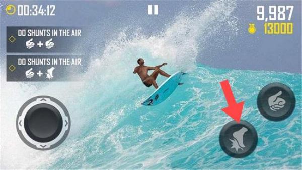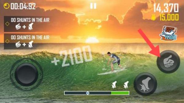 2、在空中时点击右侧带脚印的特技按钮,完成空中特技动作。