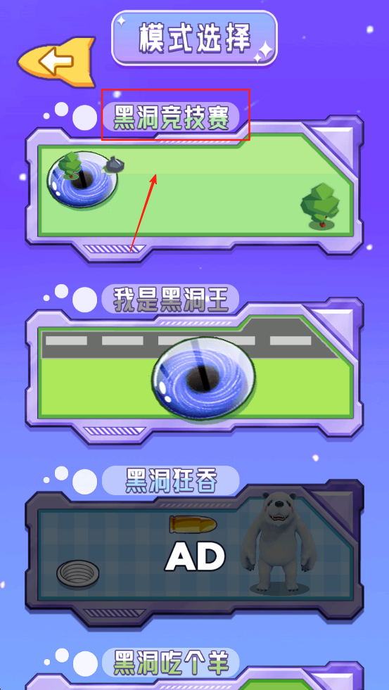 3、在模式选择界面,选择“黑洞竞技赛”开始游戏。