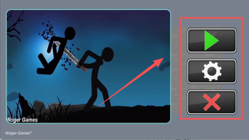 1、进入游戏界面,点击右侧绿色三角形开始按钮,启动游戏。