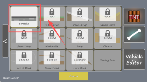 3、进入关卡选择界面,点击 “Straight” 关卡,进入该关卡游戏。