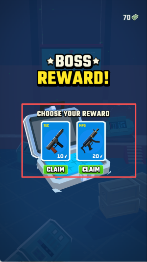 3、击败 boss 后,从 TEC 和 MP5 两把武器中选择一把,点击 “CLAIM” 领取。
