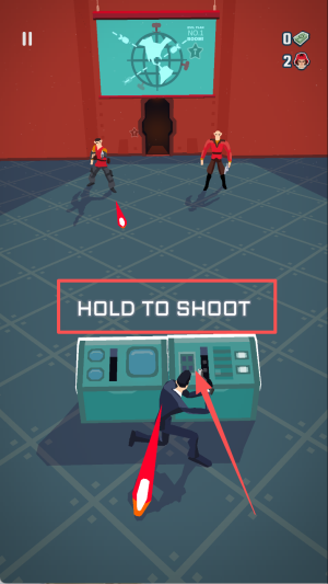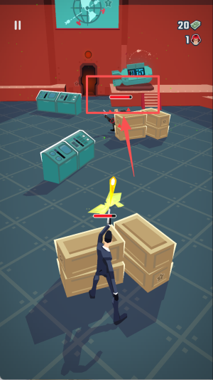 1、按住屏幕,操控角色射击前方的敌人,注意躲避敌人的攻击。