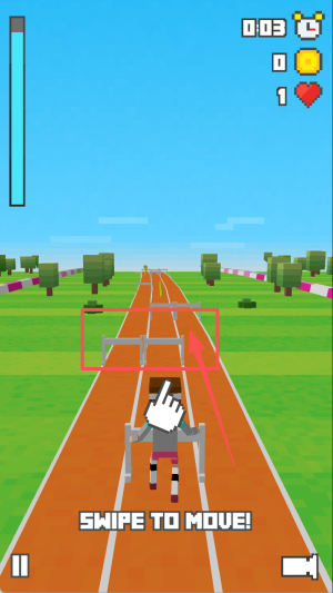 3、游戏中,滑动屏幕操控角色移动,躲避跑道上的障碍物,持续向前。