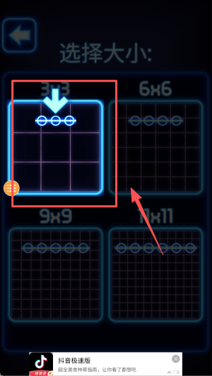 2、在 “选择大小” 界面,点击 3×3 的棋盘,确定游戏棋盘规格。