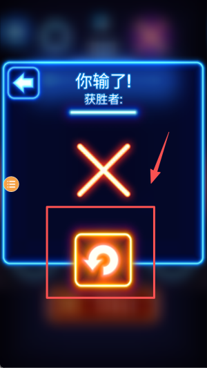 4、若显示 “你输了”,点击下方带箭头的重玩按钮,重新开始一局游戏。