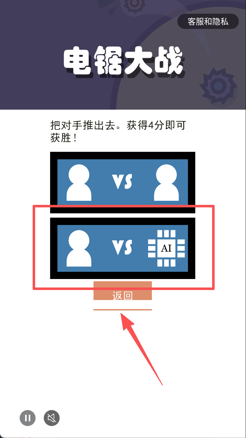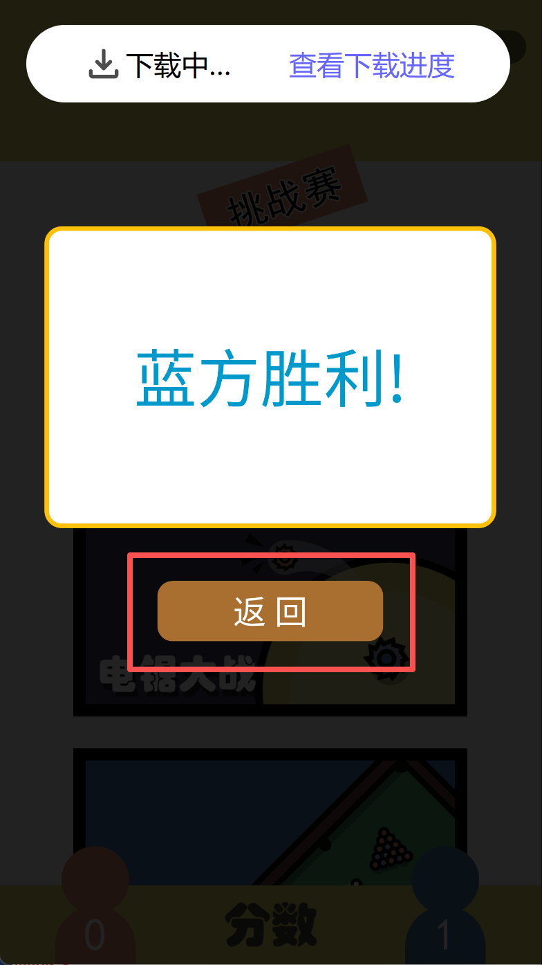 4、游戏结束后,点击 “返回” 按钮,可回到游戏选择页面。