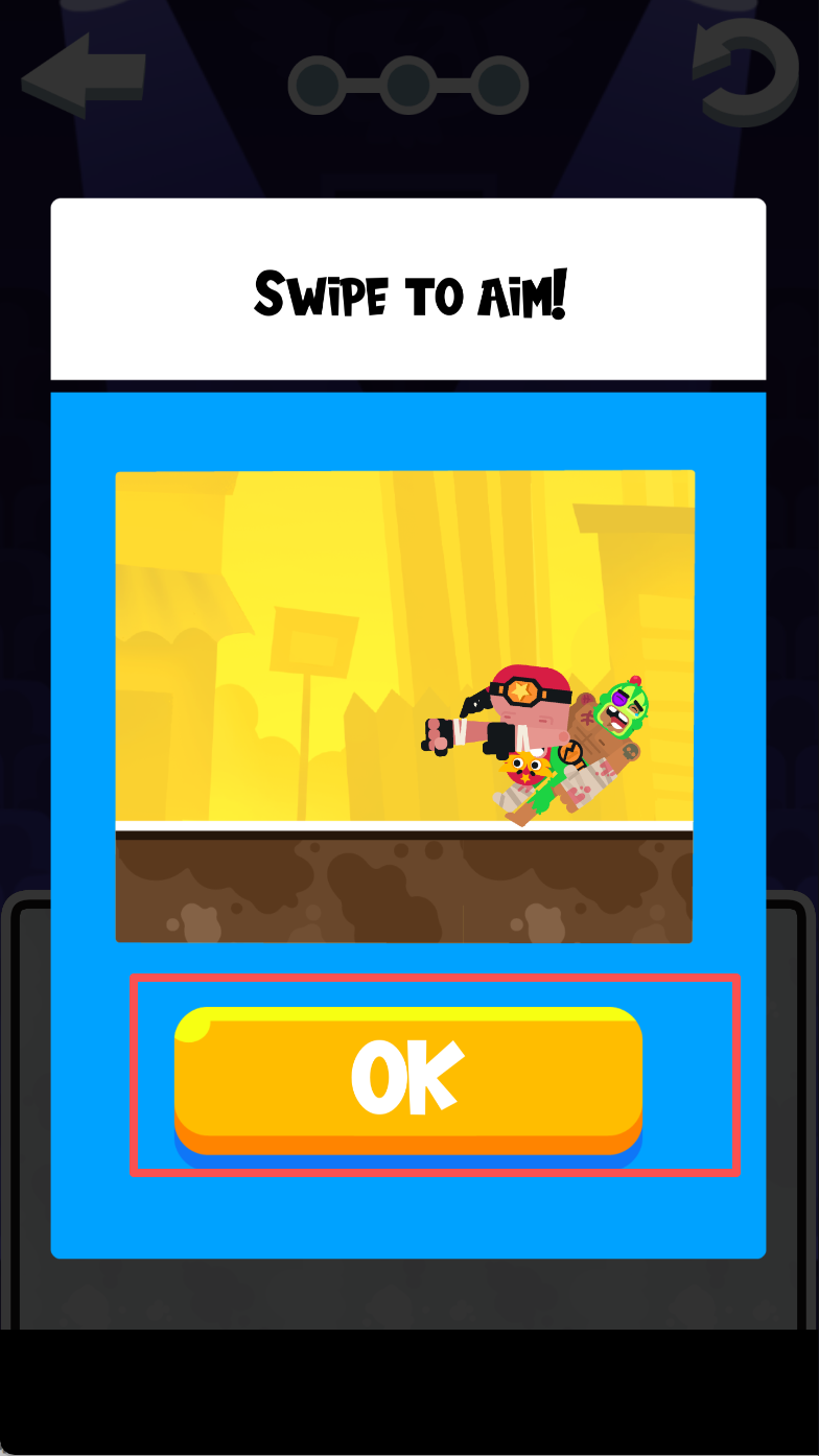 2、游戏开始前,点击 “OK” 按钮,确认通过滑动来瞄准的操作提示。