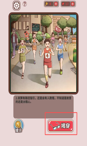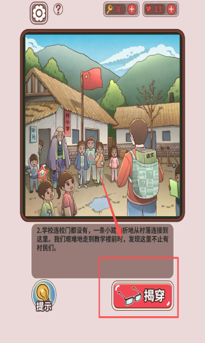 2、在场景内,遇到相关事件画面时,点击 “揭穿” 按钮,推进游戏剧情。