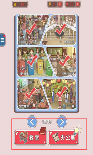 1、进入游戏,可点击 “教室” 或 “办公室” 按钮,选择不同场景开启游戏。