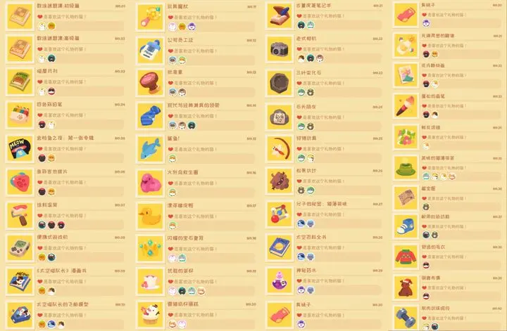 ②在购买礼物界面,点击每个猫猫的头像,喜欢这个礼物的猫猫周围会出现爱心,送给出现爱心的猫猫即可。