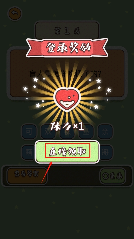 1、首先,查看登录奖励,点击“直接领取”按钮获取体力奖励。